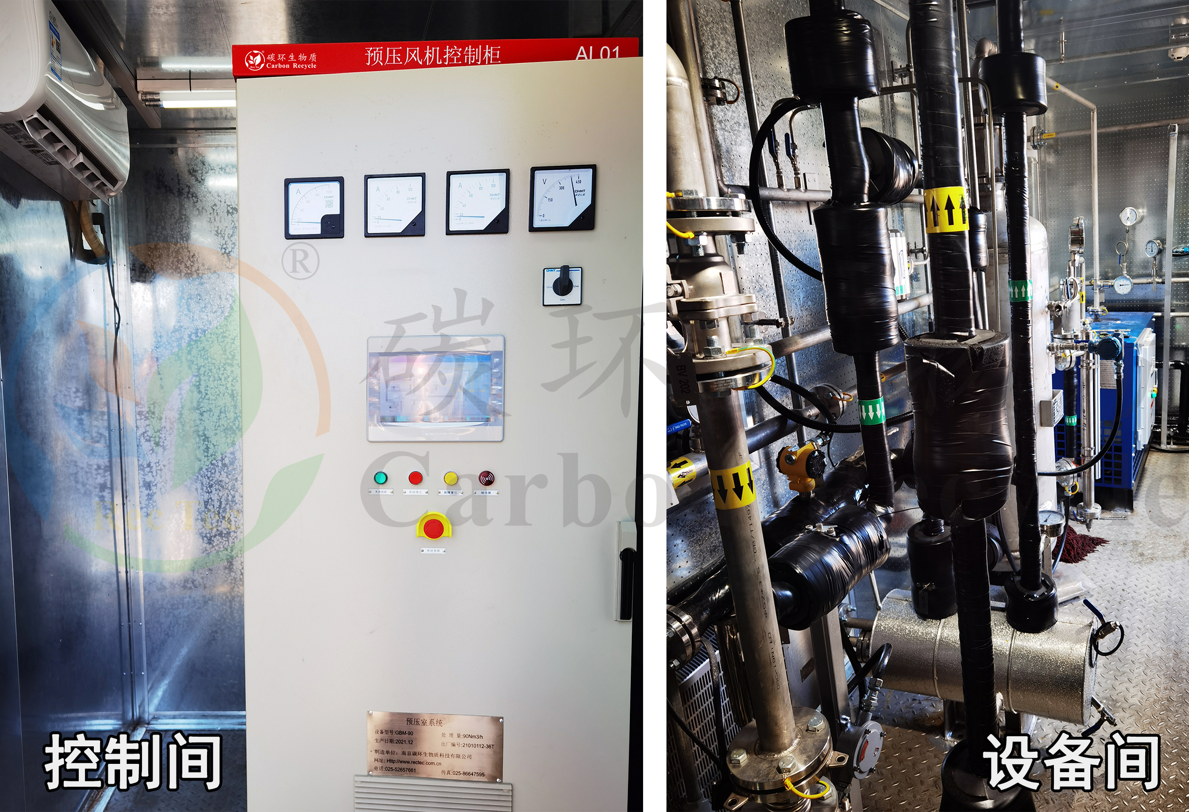 南京碳環(huán)90Nm3/h瓦斯氣預(yù)壓室系統(tǒng)為4臺顏巴赫J620燃氣發(fā)電機組提供預(yù)燃室所需的燃氣,該系統(tǒng)采用集裝箱結(jié)構(gòu)。集裝箱內(nèi)分隔為設(shè)備間和控制間,設(shè)備間除含主設(shè)備(無油壓縮機、過濾器、冷干機等)外,還配備供暖、伴熱保溫、照明、通風(fēng)等設(shè)備(均為防爆產(chǎn)品),同時安裝有火警、瓦斯超限報警裝置,并將報警信號接入電廠DSC系統(tǒng)中,火警、瓦斯超限報警系統(tǒng)具備連跳功能;控制間除安裝了控制柜外,還安裝了照明、空調(diào)。整個系統(tǒng)布置緊湊、檢修通道寬敞,獲得用戶的好評。